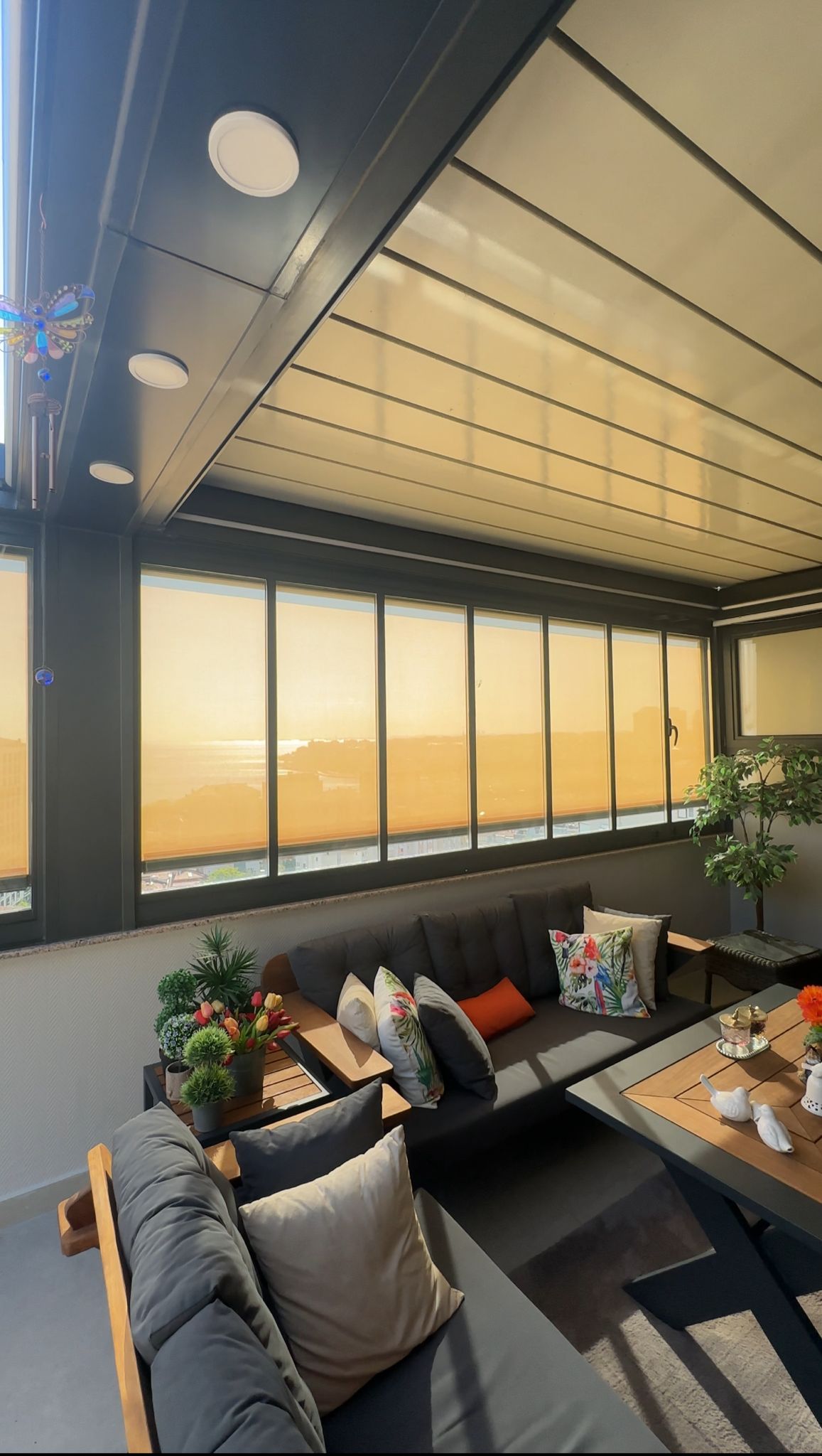 Dış mekânlarda konforu ve korumayı bir araya getiren akıllı perde sistemi.